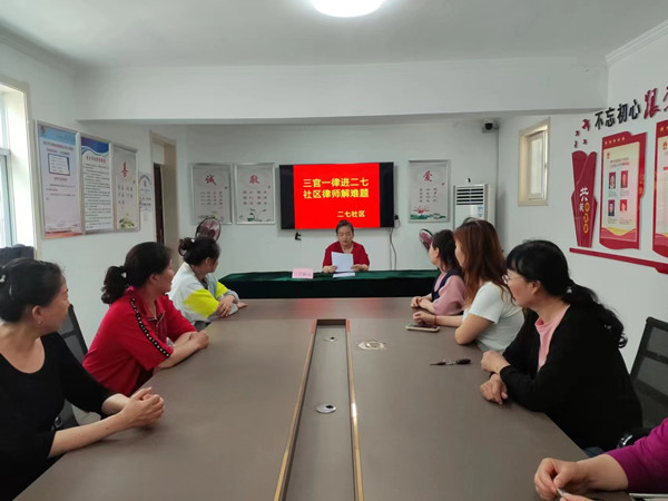 通过建立协调机制,依托信息共享平台,开展联合执法和整治,及时发现问题,定期通报进展,督促限期整改,解决成效反馈,形成完整的事件处置闭环,真正实现各部门之间的信息互通和资源共享,凝聚工作合力,切实提升了基层问题解决的速度和质量。此项工作推进以来,“三官一律”成员们积极为辖区群众答疑解惑,共组织各类宣传讲座42场次,开展法律援助14人次。