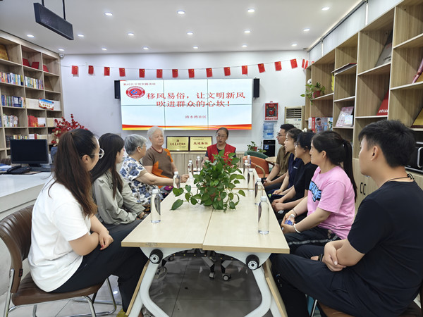 日前,清水湾社区新时代文明实践站采用茶话会的形式,邀请辖区内“老中青”三个年龄段的居民,用通俗易懂的语言讨论婚嫁彩礼的意义和移风易俗的新风尚。随后,大家一同观看移风易俗宣传教育片,结合辖区实际案例为导向,引导居民进一步转变思想观念,鼓励大家做喜事新办、净化风俗的倡导者,做厚养薄葬、传播文明新风的建设者和做健康生活、传播文明新风的推行者。
