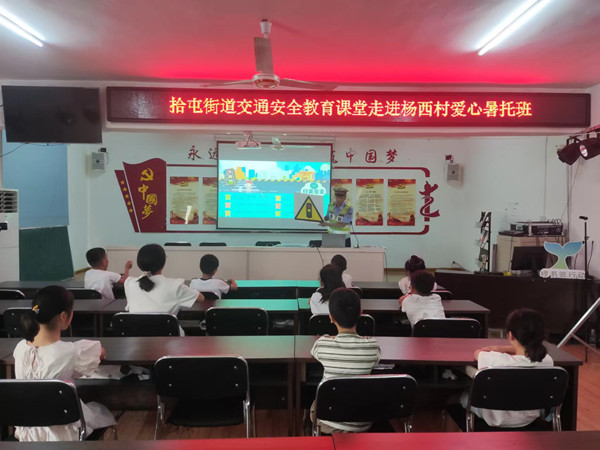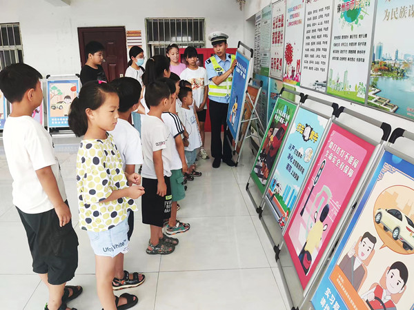 中国江苏网8月1日徐州讯 为了培养辖区少年儿童从小养成良好的交通安全习惯,提高未成年人交通安全意识和自我保护能力,日前,徐州市鼓楼区拾屯街道联合鼓楼区交警大队二中队走进杨西村开展安全教育。