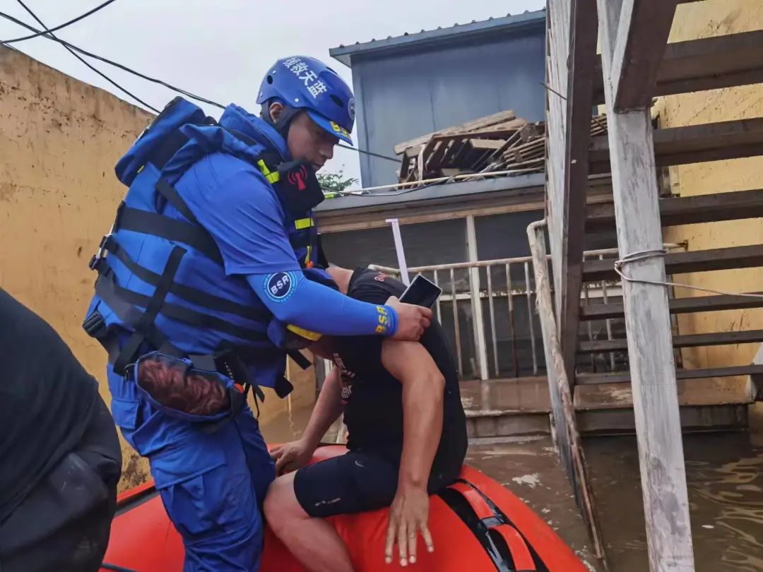 在救援过程中,由于桥梁坍塌和车辆受阻,很多地方只能划船进入。时间不等人,吴继行和救援队员们抬起设备补给,跳上冲锋舟,在向导的指引下驶入受灾村落,逐一对村民房屋进行搜寻,发现被困人员后,利用水域救援橡皮艇将人员转移到安全区域。