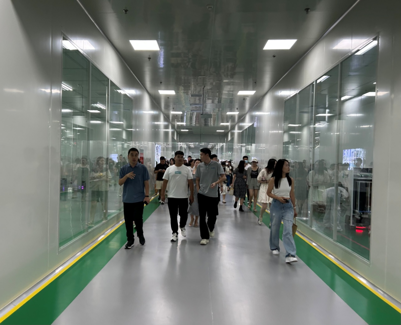 活动在一场沉浸式的参观中拉开序幕,男女嘉宾首先来到中清集团企业文化展厅,走进车间参观通道,近距离了解光伏电池生产流程,感受绿色新能源发展前沿技术力量。
