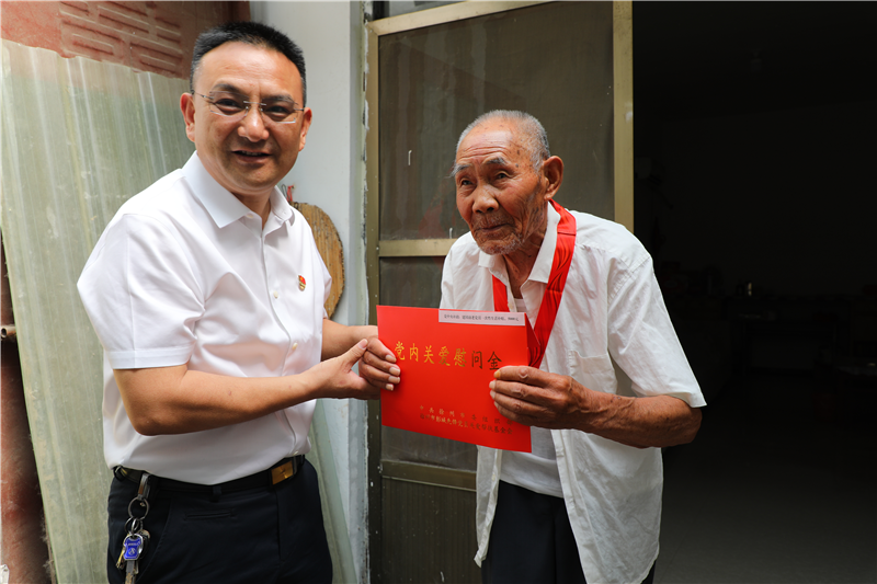 走访中,工作人员驱车千里来到上海第四警备区干休所,走访慰问98岁的睢宁抗战老兵王宝园,与王宝园老人拉家常,问冷暖,聆听老人的英勇事迹和抗战故事,向他表示敬意,并给老人送上家乡土特产和美好祝福。