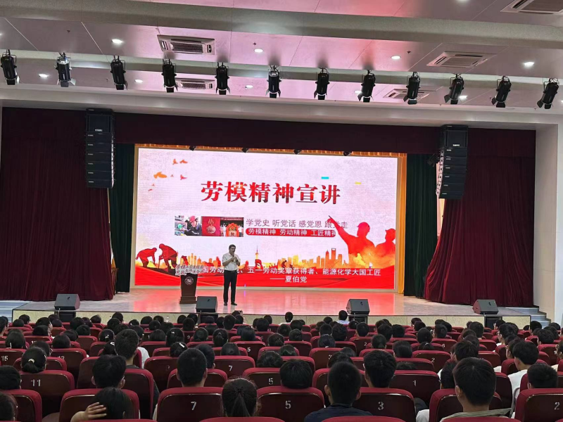 在热烈的掌声中,全国劳模“双进”宣讲团团长、徐州矿务集团有限公司高级技师夏伯党,结合学习党的二十大精神思考感悟,用自己的亲身经历给大家上了一堂生动的《劳动教育课》。他扎根煤矿井下机电设备维修三十多年,参与完成国家973重大科研创新项目,称为“矿山机电大夫",在宣讲中夏伯党用实际行动激励同学们脚踏实地、兢兢业业、一步一个脚印,戒骄戒躁,恪尽职守、精益求精,带领团队不断挑战不可能,在平凡的岗位上做出了不凡的贡献。