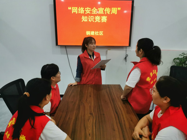 “上网时,如果突然弹出一个陌生窗口,提示无抵押贷款,1分钟火速到账,你们会怎么办呢?A关闭窗口或B点击查看。”为普及网络安全知识,提升基层在职人员的网络安全意识,共建文明网络环境,9月11日上午,铜沛街道铜建社区围绕《中华人民共和国网络安全法》开展“网络安全宣传周”知识竞赛活动。比赛现场,大家热情高涨,社区工作人员运用各自掌握的网络安全知识沉着应答,通过以赛促学,积极营造“比学赶超”的浓厚氛围。