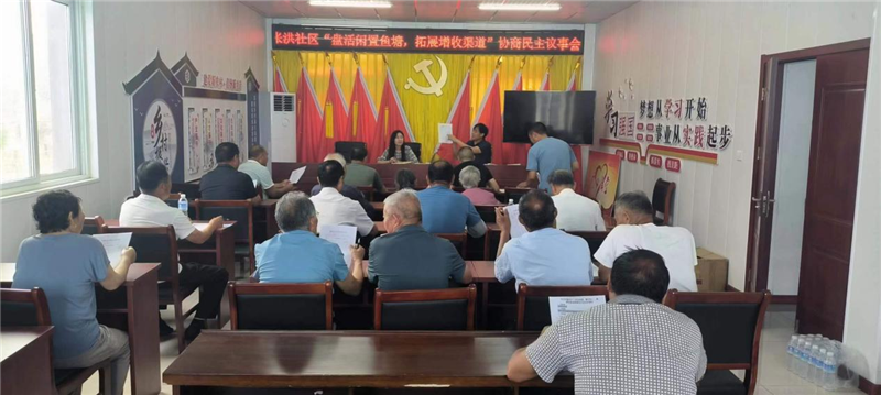 张洪社区“两委”坚持问题导向,聚焦“靶心”开展解题分析,社区协商委员们也积极走访群众,多方听取意见。在走访,协商委员了解到社区有15个属于集体的鱼塘,有部分鱼塘被村民长期占用,有些鱼塘常期没及时清理一直闲置荒废。协商委员们把走访中群众的想法、建议上报到社区“两委”,“两委”经过梳理归纳、上会研究,制定出了详细的鱼塘发包方案,为社区集体经济增收达10余万元。