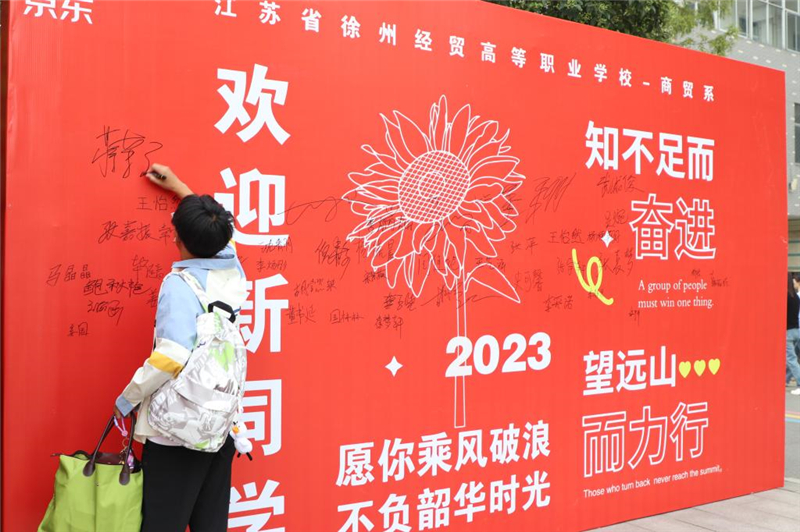 中国江苏网9月13日徐州讯 启航新学期,奋进新征程。9月11日,江苏省徐州经贸高等职业学校1200余名2023级新生,满怀希望与憧憬,走进徐州经贸,开启崭新篇章,点亮青春梦想。