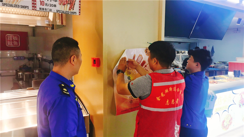 为做好商业街区的垃圾分类工作,提高商户的垃圾分类意识,金龙湖街道综合行政执法局主动组织党员志愿者、网格员等多元力量走进商业街区开展垃圾分类宣传活动,营造绿色低碳环保的氛围,倡导商户积极参与到垃圾分类行动中来。
