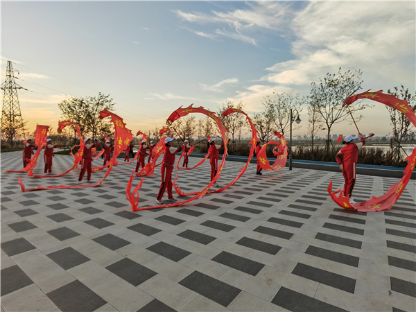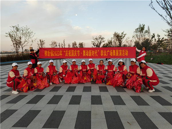 中国江苏网10月7日徐州讯 为进一步激发居民参与文化活动的热情,丰富群众精神文化生活,营造浓厚的全民健身氛围,10月1日上午,由徐州市泉山区柳新镇新时代文明实践所主办的“庆祝国庆节 舞动新时代”群众广场舞展演活动在九里湖湿地公园举行。展演现场,来自全镇的5支舞蹈队近100名队员参演,吸引近千名群众观看。