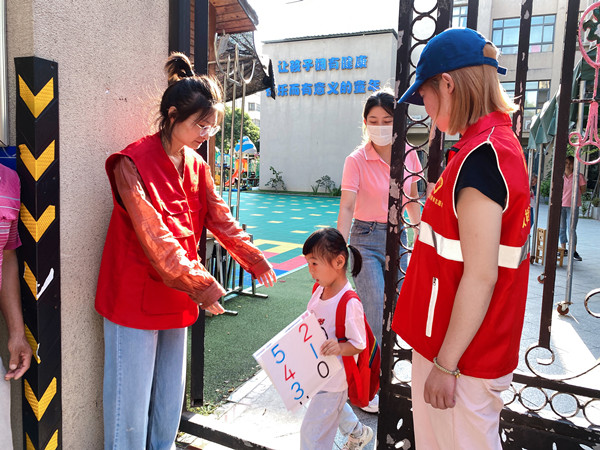 为切实守护孩子们上下学交通出行安全,桂园社区广泛发动辖区退休教师、党员志愿者、青年志愿者等群体共同组建“爱心护学”志愿服务队,为学生们开辟上下学的“安全通道”。每到上下学时间段,志愿者们身着红马甲,站在学校门口,协助维持秩序,提醒家长在指定地点接送、引导学生有序过马路,为孩子们构建一个安全、文明的道路环境。