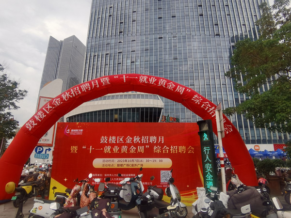 10月7日,徐州市鼓楼区人社局抢抓中秋、国庆长假“黄金周”大量人员返徐的关键时期,在环城街道鼓楼广场举办“十一就业黄金周”综合招聘会暨鼓楼区2023年金秋招聘月活动,为高校毕业生、返乡农民工、退役军人、就业困难人员、宝妈等各类劳动者就业创业以及企业招工拓宽求职招聘渠道。