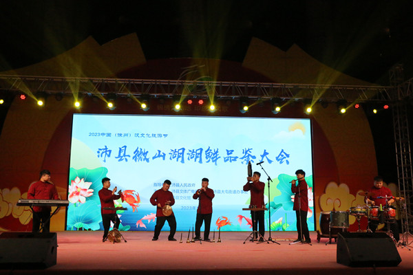 中国江苏网10月14日徐州讯 10月13日晚,由沛县人民政府主办,沛县文旅局、沛县大屯街道办事处承办的沛县微山湖湖鲜品鉴大会在沛县文化中心广场开幕。