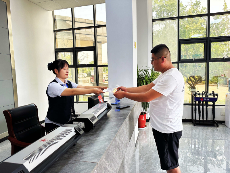205国道新沂收费站月票大厅负责人说:“205国道新沂收费站月票分为15次月票和45次月票两种,购买时需要购买月票的车属单位或个人提供车辆所有人身份证(营业执照)、行驶证(正副本)原件和复印件等材料。月票大厅一次性告知所需材料,并公示咨询电话,也可以添加月票办理微信群,在群内可随时咨询相关问题,由月票办理工作人员详细解答。”(供图:新沂市交通运输局)