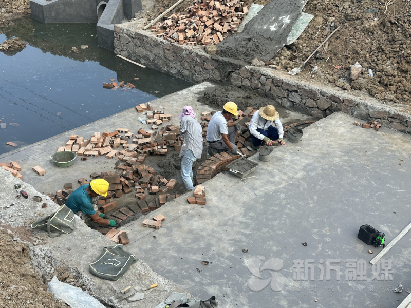 在钟吾街道李庄村臧沭河全线贯通工程项目施工现场,记者看到,河道上建设工人们正在修筑拦水坝,铲车正在岸边“轰隆隆”地来回穿梭,清理平整土地,为下一步绿化工作做准备。