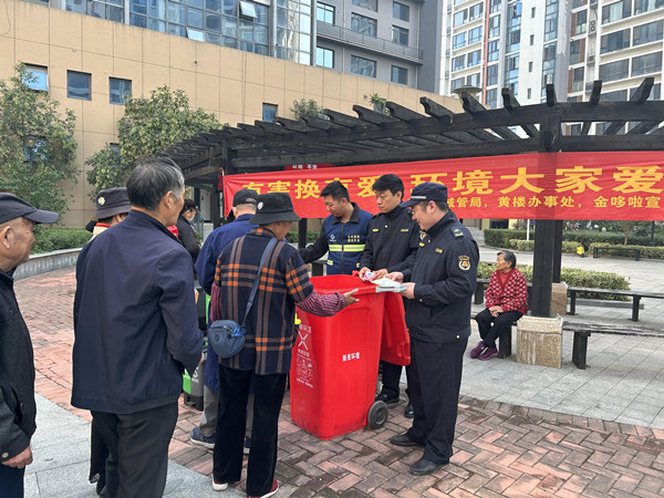 黄楼街道通过“1+7+N模式”整体统筹垃圾分类工作,以街道新时代文明实践所为主导,以7个社区新时代文明实践站作为主阵地,统筹“N”个资源即每个社区的垃圾分类专员、楼长、志愿者、物业等力量,确保各项工作流程有序开展。同时,充分发挥社区“战斗堡垒”作用,广泛开展“线上+线下+互动”各种形式的宣传教育,逐步在潜移默化中提升居民垃圾分类意识。