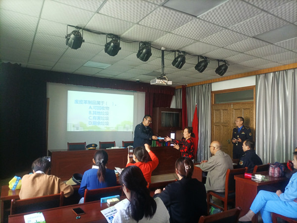 近日,在徐州市城乡生活垃圾分类和治理工作领导小组办公室的指导下,牌楼街道综合行政执法局组织开展“城管开放日”暨“垃圾分类体验周”系列活动。活动中,城管队员通过案例解析、观看视频、模拟投放等形式,向社区网格员、党员志愿者、居民群众等群体详细讲解垃圾分类的方法技巧,展示垃圾分类中转和处理过程,辨析日常分类容易混淆的生活垃圾。随后,通过一场趣味知识竞赛帮助大家记牢垃圾分类知识,现场气氛紧张而又欢乐,推动垃圾分类知识入脑入心。