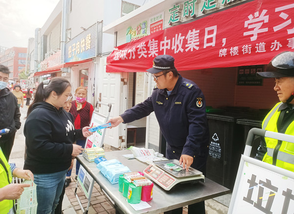 有害垃圾处理不当不仅会伤害身体健康,还会对自然环境造成一定的危害。为妥善处置有害垃圾,牌楼街道综合行政执法局联合徐州市优佳物业管理有限公司开展“有害换有爱”垃圾回收兑换活动。活动现场,在城管队员和志愿者的引导下,居民们纷纷将家中的废弃电池、荧光灯管、含汞血压计等有害垃圾带到活动现场,亲手投放到对应的有害垃圾桶内,兑换成牙膏、肥皂、抽纸等日用品。同时,志愿者们还现场发放宣传彩页,向居民们普及常见的有害垃圾,讲解有害垃圾的危害性,提升大家对有害垃圾的重视程度,养成生活垃圾分类投放的良好习惯。