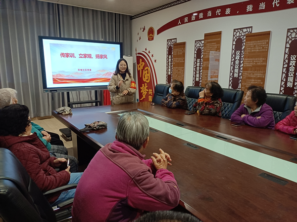 近日,苏电社区新时代文明实践站开展“传家训、立家规、扬家风”活动,以家庭故事分享会的形式,引导辖区居民尊重、继承、弘扬中华优秀传统文化。活动现场,社区新时代文明实践站邀请优秀文明家庭代表与大家共同分享生活点滴,纷纷结合自身经历相互交流各自的家庭故事。“红盟”志愿者还向居民们详细讲解部分传统节日的由来、习俗以及诗词等内容,进一步增强居民群众对家庭和睦、家族兴旺等传统家庭观念的认同感。
