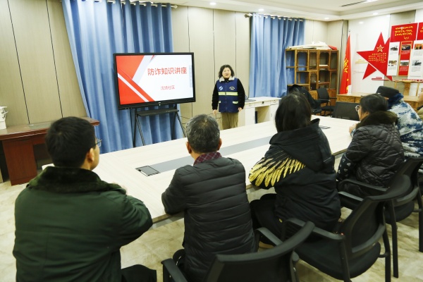 “购买药品、保健品要选择正规渠道,不要相信所谓的‘特效药’。”“承诺高息零风险的理财项目大家要格外提高警惕,小心投资,谨防上当受骗。”近日,在铜沛街道沈场社区新时代文明实践站,社区网格员肖建以图文结合、面对面宣讲的形式,向辖区居民开展反诈宣传活动,提醒辖区居民特别是老年人在日常生活中提高警惕。铜沛街道各社区通过网格微信群、电子显示屏、宣传栏、发放宣传单等多种方式向辖区居民普及诈骗途径和常见的诈骗手段,帮助辖区居民提高防骗、识骗、拒骗的能力,营造全民反诈氛围。