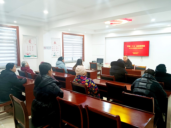 新华报业·新江苏2月1日徐州讯 1月31日,一场以“贯彻二十大 奋进谱新篇”为题的理论宣讲在徐州市鼓楼区丰财街道怡园亭社区新时代文明实践站火热开讲,鼓楼区人大代表、社区党委书记徐帆结合自身工作实际,为辖区党员和群众代表带来了一堂精彩生动的冬训课堂。
