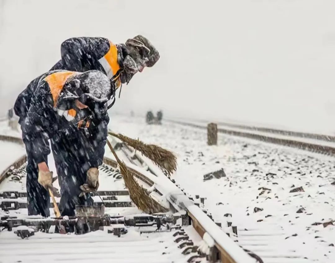 “时间比较紧张,大家伙手脚麻利些!”严寒天气造成车站连续出现道岔挤岔警报,该公司韩桥车站安全员王勇正组织大家冒着雨雪清理车站道岔,大风卷着雪粒纷纷扬扬打在身上,棉衣棉鞋也被打湿浸透。经过1个多小时的努力,六副道岔上的积雪终于全部清理完毕。