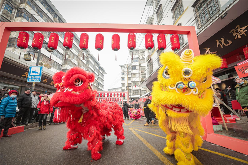 新华报业·新江苏讯(新华报业·新江苏记者 张扬 通讯员 泉轩)剪纸、制香、击鼓纳福、龙狮表演、窑湾绿豆烧酒、沛县沛公酒……2月6日上午,“2024徐州倒马井首届年俗文化惠民活动暨元宵灯俗系列活动”在泉山区启动,一系列多彩的群众文化活动为倒马井这条市井深巷增添了浓厚新年气息,30个非遗市集摊位吸引市民前来“逛吃”体验,拓印体验、汉服表演、徐州唢呐演奏传递着非遗文化传承的不息活力。