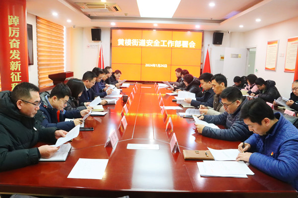 1月26日、1月29日,黄楼街道多次召开安全生产专题会议,传达国家及省市区安全生产会议精神,研究部署节前安全生产大排查工作。会上,街道党工委书记娄永强调,街道上下要高度重视安全生产工作,统筹抓好“人防”“物防”“技防”,及时排查隐患、严肃整改,确保春节期间环境安全稳定。