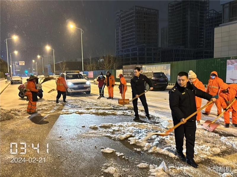 迎雪而上 以动制“冻”。降雪开始后,黄山街道各科室、各社区立刻采取行动,清雪除冰,保卫行人安全。道路交通方面,综合行政执法局连夜安排工作人员联合徐州金天物业管理有限公司对主干道、高架桥匝道进行机械化作业。背街小巷、居民小区方面,发动13个社区组织工作人员、党员志愿者,物业、城管齐上阵,共同撒盐融雪和清除积雪。同时,各社区充分发动辖区街边门面店铺,落实门前三包制度,主动清理门口积雪,方便行人出行,防止出现行人滑倒摔伤等事件。各“两新”党组织勇于担当,积极服务,主动认领“责任区”。扫雪行动中,大家拿着铲雪工具对辖区主要道路的冰雪进行铲除,尽管天气寒冷,大家分工有序,干得热火朝天,在“咣咣咔咔嚓嚓”的除雪除冰“进行曲”中,为居民清理出一条条暖心的“安全通道”。