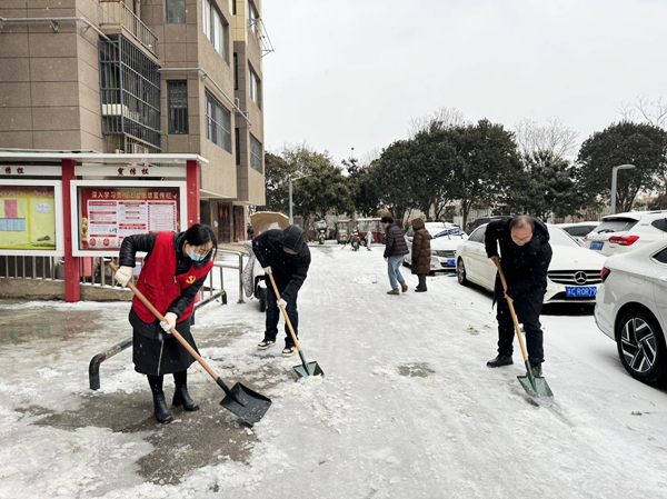 代表们积极参与各自选区内人行便道、背街小巷、房前屋后的除雪行动,齐心协力为群众开出一条“安全路”、送去一片“温暖情”。凛冽的寒风也没能阻挡他们的除雪热情,他们不畏严寒、顶着风雪,用力挥舞着铁锹、扫帚等工具对街巷道路、小区路面等重点区域的积雪进行清扫,大家齐心协力,配合默契,充分发挥了人大代表先锋模范作用,切实将“我为群众办实事”落到实处。