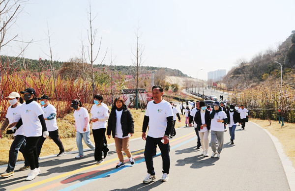 随着“开始”的口号声响起,广大职工们抖擞精神、热情高涨,迎着春风、你追我赶,争先恐后地向着山顶进发。在欣赏沿途风景、锻炼身体的同时,他们互帮互助,增强团队协作意识,也为春日里的五山公园增添了一道亮丽的风景线。本次活动全程约3千米,最终根据先后到达顺序评选出30名优胜奖,并发放纪念品。