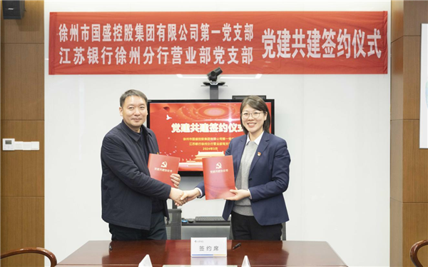 志愿服务活动后,全体人员来到江苏银行徐州分行营业部党建活动室,围绕各自党建工作的基本情况、主要做法和心得体会展开交流。国盛集团第一党支部书记井晨和江苏银行营业部党支部书记路莹签订了党建结对共建协议。