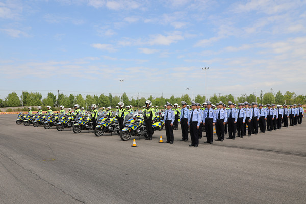 新华报业·新江苏讯 4月29日上午,徐州市公安局交警支队在公安局警用摩托车训练基地举行“五一”安保启动仪式,全市交警民警、铁骑队员代表共70余人参加活动。