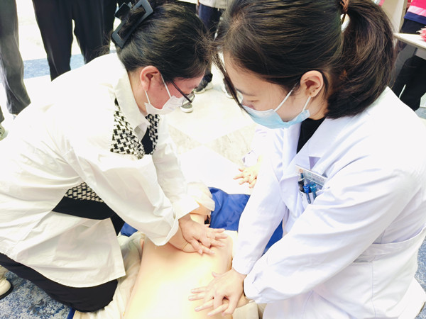 现场的消防急救体验区受到了过往群众的积极参与,来自孤山北社区卫生服务中心的医护人员采用“理论+实操”的形式,不仅对基础急救知识进行重点讲授,还利用人体模型对心脏按压、人工呼吸等操作开展实践培训,居民们热情高涨,纷纷踊跃报名参与体验。