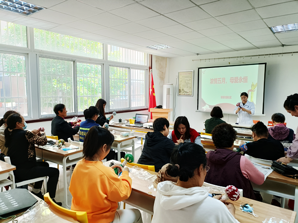 琵琶花园社区新时代文明实践站举办“情浓五月 母爱永恒”母亲节主题活动。活动邀请了新健康医院邵医生开展妇科知识健康讲座,并带领大家手工制作艾灸养生锤,大家在制作过程中相互交流、相互帮助,逐渐制作出一个个精美的艾草锤,大家纷纷展示和分享自己制作的艾草锤,“回家后我要把锤子送给妈妈,让她随时能够敲打身体,疏通经络。”居民李女士笑着说道。