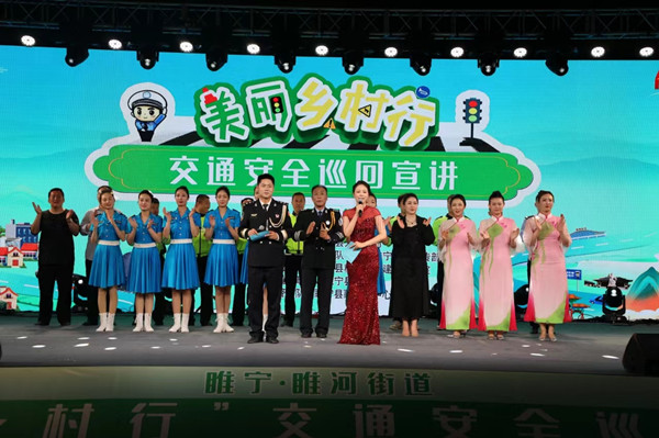 5月17日晚,徐州市公安局交警支队联合睢宁县公安局举办了2024年睢宁站“美丽乡村行”交通安全巡回宣讲活动。本次活动由徐州市公安局、睢宁县人民政府主办,徐州市公安局交警支队、中共睢宁县委宣传部、睢宁县公安局、睢宁县精神文明建设办公室承办。活动现场座无虚席,客货运驾驶人代表、外卖快递人员代表、学生、村民等3000余人参与活动,紧紧围绕着“交通安全”主题,现场气氛火爆热烈,观众积极互动,在寓教于乐中深化了交通安全宣传的教育效果。