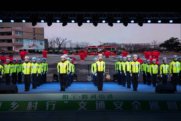 活动现场,徐州市公安局交警支队“红绿灯”艺术团推动交通安全知识与地域文化特色深度融合,为广大群众现场演绎了热情洋溢的歌舞《121齐步走》、朗朗上口的群口快板《安全伴你行》、饱含交通安全警示意义的改编歌曲《可能》、将现代文明交通理念与传统曲艺结合的柳琴弹唱《文明交通光荣榜》、寓教于乐的小品《大喇叭村支书》等精彩纷呈的交通安全文艺节目。由睢城实验小学小小交警队带来的手势操表演赢得现场观众阵阵喝彩,担任徐州交警交通安全宣传形象大使的著名演员陆彭为大家献上了掷地铿锵的诗朗诵《文明交通礼赞》,将活动氛围推向高潮。