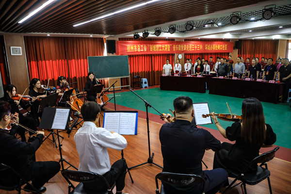 新华报业·新江苏讯 用音乐讲述党的故事,用歌声传递党的声音。5月15日下午,徐州市鼓楼区环城街道闸口社区邀请徐州市总工会“彭城职工大讲堂”服务项目和徐州爱乐交响乐团志愿服务队走进徐州市第三十三中学,带领近200名师生和社区党员,开启了一场“声”入人心的“音乐微党课”学习之旅。