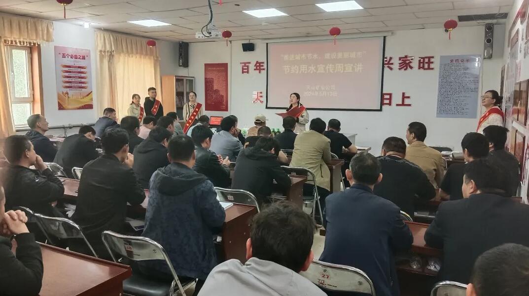 以“节水宣传周”“世界水日”为契机,利用条幅牌板、微信公众号等媒介广泛开展宣传工作,提高全员节水意识。所属天山矿业公司围绕“推进城市节水,建设美丽城市”主题开展“节水周”宣传活动,通过井口大屏轮播节水宣传标语、播放宣传教育片等形式宣传《节约用水条例》,传播绿色发展理念,持续营造惜水爱水、低碳节能的浓厚氛围。