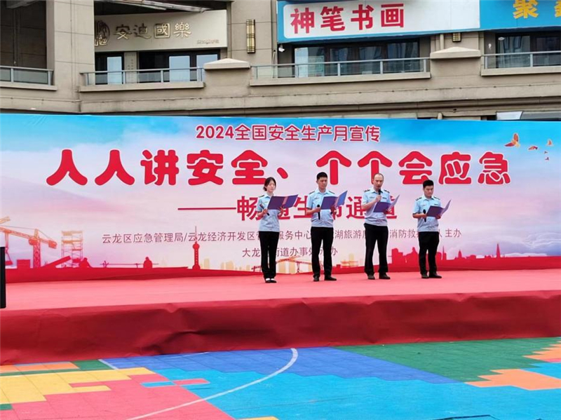 新华报业·新江苏讯 6月16日上午,由徐州市云龙区应急管理局、云龙区经济开发区管理服务中心、大龙湖旅游度假区消防救援大队主办,大龙湖街道办事处承办的2024年“安全宣传咨询日”活动在大龙湖街道中锐星尚城广场举行。区应急、消防、经开区、公安派出所等相关部门及属地办事处负责人,大龙湖街道办事处各科室、各社区安全管理人员,辖区各生产经营单位主要负责人参加活动。
