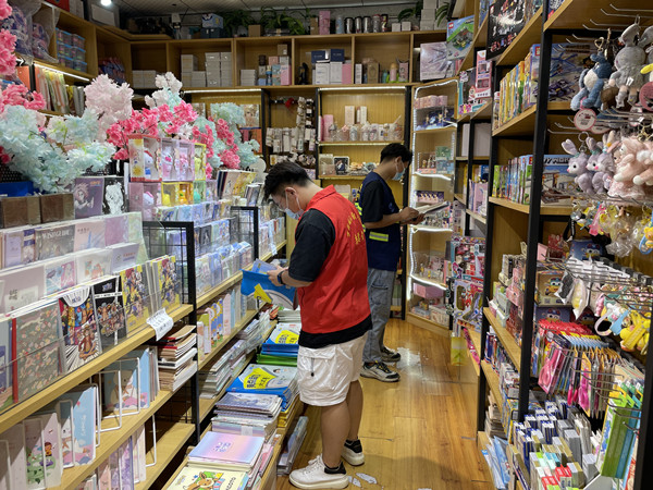 日常工作中,九里街道网格员们穿梭在辖区内的商店、快递驿站等经营场所,针对学校周边书店、网吧等重点区域定期走访摸排,检查店内是否存在印制或售卖非法出版物、盗版书刊等行为,引导经营者自觉抵制危害未成年人成长的不良出版物流入市场,积极加入“护苗”行列中,为青少年健康成长营造良好的社会文化环境。(杨晨)