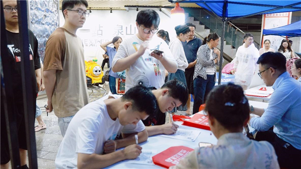 此次招聘会根据青年人才的年龄特点和生活习惯,将求职招聘和夜间经济相结合,打造了集招聘夜市、政策夜市、服务夜市为一体的人才夜市,让招聘企业“摆摊”亮岗,求职者“逛街”择业,巧用广场烟火气,为就业服务聚人气。本次活动集“现场招聘、直播带岗、政策服务”于一体,为求职者和用人单位搭建人性化、多样化的人才供需服务平台,帮助青年人才留在泉山就业创业。