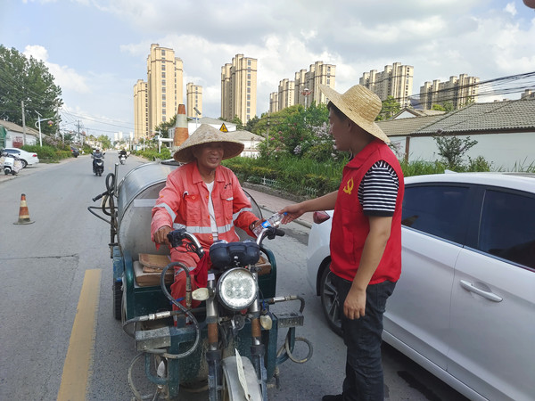 “最近天气炎热,每天气温都在37摄氏度左右,我接到的外卖单子也多了起来。很感谢社区在我最需要的时候送来了解暑降温食品,真是太贴心了!”正在港利小区门面店外等待取餐的外卖小哥激动地说道。为了向那些在酷暑中坚守岗位的“城市守护者”表达敬意与关怀,连日来,徐州市鼓楼区拾屯街道组织志愿者们为货车司机、外卖员、快递小哥、环卫工人等户外工作者送上精心准备的矿泉水、饮料和西瓜等解暑降温食品,叮嘱他们在高温工作下,要时刻注意安全,做好防暑降温。一句句关心、一声声叮嘱,让新就业群体倍感温暖。