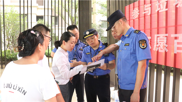 新华报业·新江苏讯 “什么是垃圾‘四分类’?‘四分类’有哪些好处?不同类型的垃圾如何处理、如何投放?”为进一步深化垃圾分类工作,提高辖区居民对垃圾分类重要性的认识,切实提升居民的分类知识与实践技能,在大龙湖街道观湖名居小区,大龙湖街道综合行政执法局、徐州市执法监督局云龙执法监督一大队的工作人员与志愿者们正手持宣传资料,耐心地向过往居民讲解垃圾分类的意义、分类标准及投放方法。通过生动的案例、图文并茂的展板以及互动问答等形式,让垃圾分类知识变得通俗易懂、深入人心。