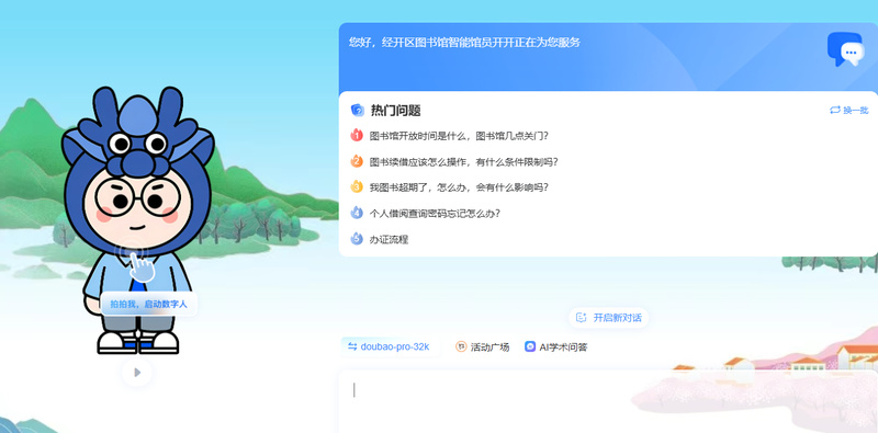 “请问图书馆下午几点关门呀?”对着大厅里的AI馆员“开开”说出疑问,几秒钟后,清晰的语音答复就传了出来。2025年上岗的“开开”是经开区图书馆的“智能服务名片”,支持语音、文字两种咨询方式,不管是查开放时间、续借图书,还是问活动安排,它都能秒回应。更贴心的是,语音功能帮视障读者扫清了查询障碍,老年读者不用再对着屏幕“找按钮”,真正实现“开口就能问,问了就有答”。