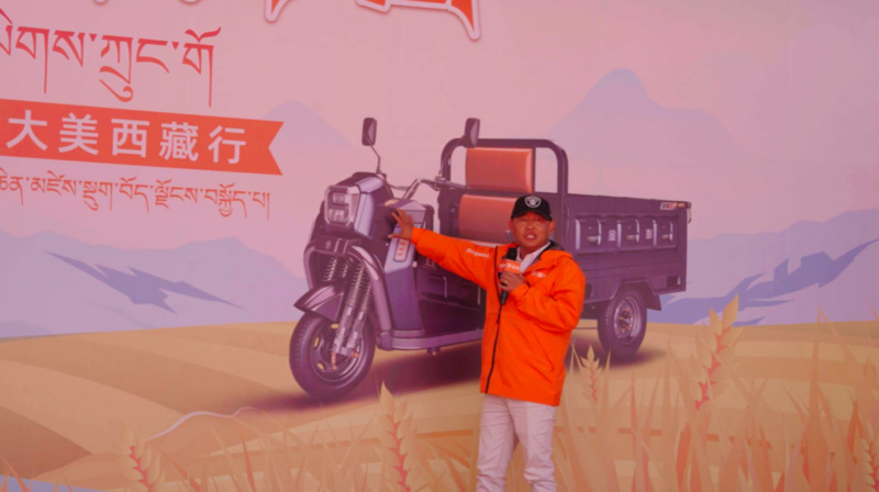 随后,郭沙居委会第一书记扎西加措在致辞中表达了对金彭集团的衷心感谢。他动情地说:“郭沙村所在的乃东区,是‘西藏粮仓’里的明珠。金彭电动三轮车已经成了我们村离不开的好帮手,拉青稞、运果蔬、送孩子,样样都行。它实实在在地帮我们解决了生产生活里的大难题,是真正通往好日子的‘金钥匙’。”