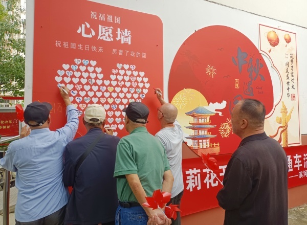 运动环节结束后,活动进入温馨的“为祖国妈妈写微心愿”环节,老人们纷纷拿起笔,认真书写着对祖国的美好祝福与期盼。“愿祖国繁荣昌盛,人民生活越来越好!”“希望祖国越来越强大,我们的晚年生活更幸福!”“祝祖国生日快乐,愿社区永远和谐温暖!”一句句朴实真挚的话语,承载着老人们对祖国的深情厚爱,也展现了他们对美好生活的向往。