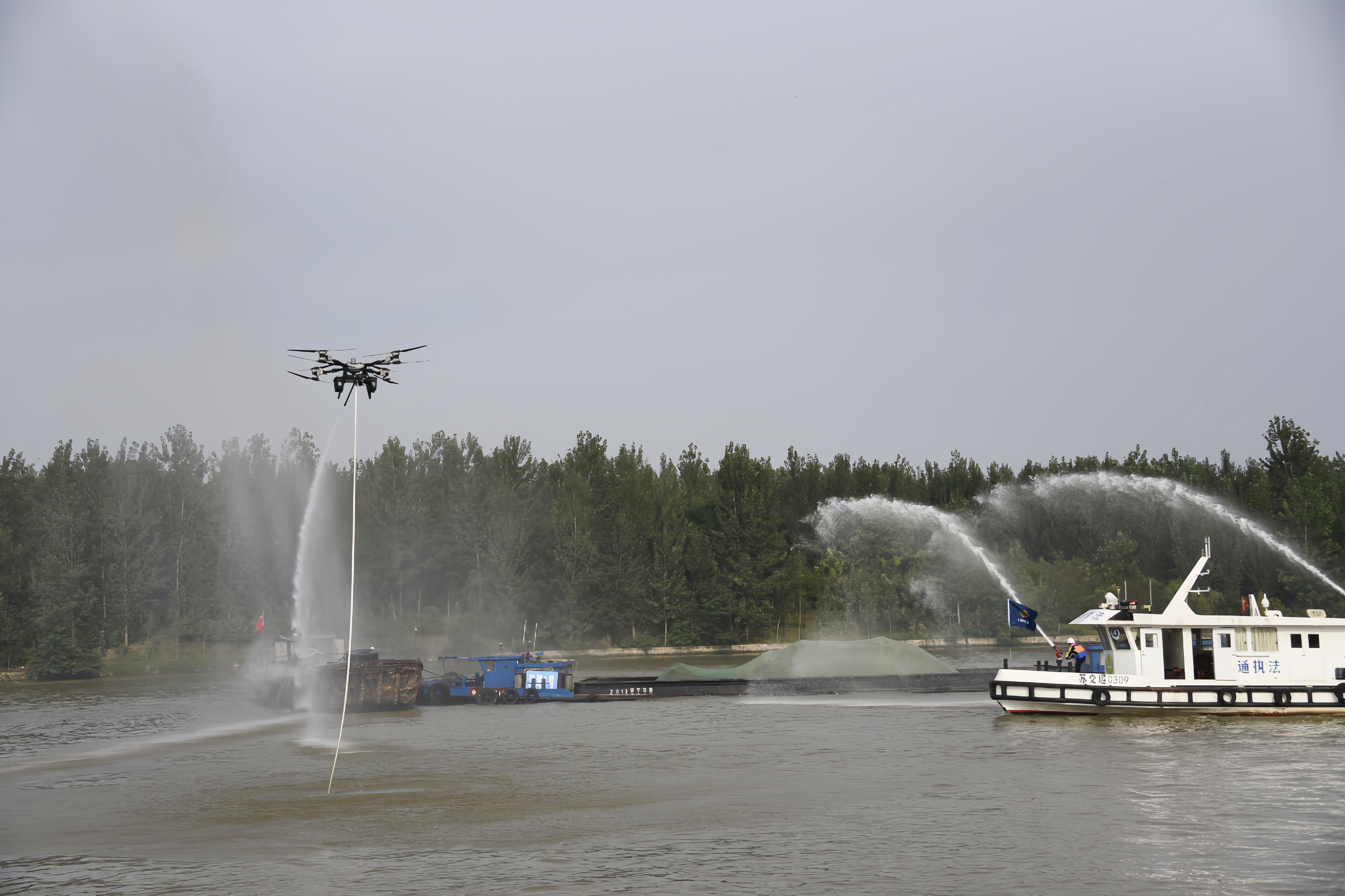 本次演练紧扣水上航行易发风险,坚持“演”“练”并重,针对性设置5个核心科目:从船员落水后的应急响应与人命救助,到船舶碰撞引发的消防灭火、船舶漏水救助,再到可能造成污染的溢油处置与环境监测,全流程模拟真实水上突发场景。演练中还集中投入一批先进装备,热成像无人机精准定位 “遇险目标”,应急灭火无人机快速扑灭火点,智能救生圈、水下声呐探测仪、遥控无人探测船协同开展搜救与监测,科技赋能让救援更高效、更精准。