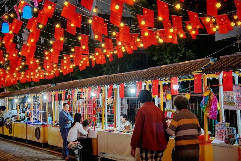 作为环城辖区热门消费聚集地,祥和夜市率先吹响国庆假期“经济号”。以“中国红”为主色调,夜市披上了节日盛装——新增的国庆主题打卡墙前,市民纷纷举着小国旗拍照留念,连片的国旗随风飘扬,将街区装点得格外喜庆。另一边,非遗手作摊位区正紧锣密鼓地筹备中,香包、铜版画、面塑等传统技艺将在节日期间集中亮相,既为游客提供“可看、可玩、可带走”的文化体验,也为本土手艺人搭建展示平台,让传统文化与假日消费碰撞出别样火花。