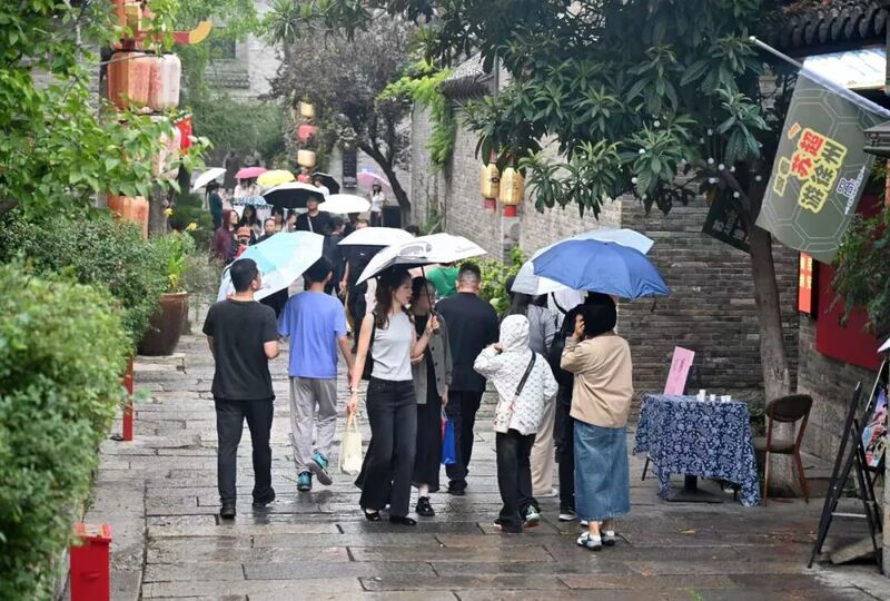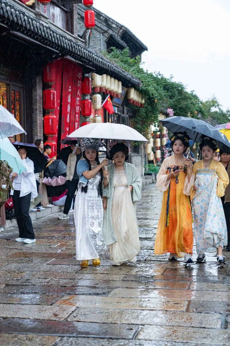 回望假期首日,细雨如丝,却挡不住游人脚步。浓缩“半部徐州史”的户部山古建筑群里,青砖黛瓦映着往来人影,老字号美食摊位前队伍蜿蜒,“南山雅集”国风市集上艺术家现场展演,游客穿梭其间,既品得到 “舌尖上的徐州”,也能回望戏马台的楚汉风云;回龙窝的灰墙黛瓦在雨雾中如水墨长卷,汉服爱好者身着华裳漫步巷陌,参与“汉服奇妙夜游”,第一届菊花展与市集同步开放,传统韵味与时尚气息撞了个满怀。