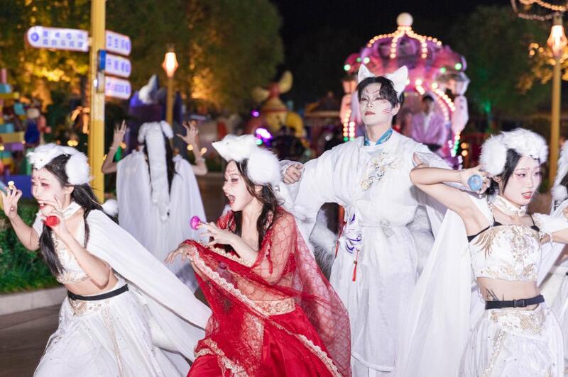 活动期间,园区每日安排主题巡游、妖族剧场、精怪狂欢夜等多场演艺活动,为游客带来持续的视觉与互动体验。此外,人气男团wif5ve将于10月12 日至11月2日空降园区,参与巡游互动与主舞台演出,进一步吸引年轻群体关注;每晚压轴上演的“梦幻焰火秀”,以璀璨光影点亮夜空,为当日活动画上圆满句号,成为游客打卡分享的热门亮点。
