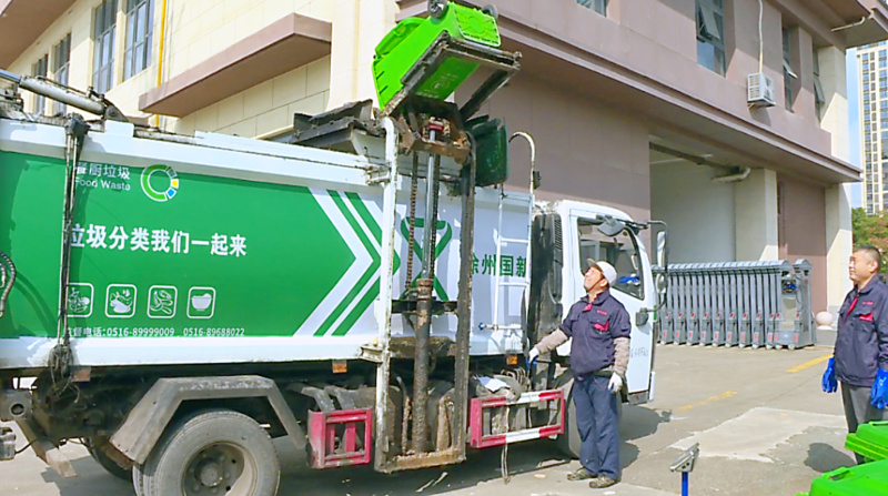 日前,沛县一家宴会酒店餐厨垃圾处置区,一辆标有“徐州国新”字样的收运车缓缓驶入。工作人员利落地将专用收集桶推至车旁,挂箱、起吊、倾倒……随后将记录着垃圾重量、收运时间等信息的联单交由酒店负责人确认,整个过程井然有序、全程留痕。